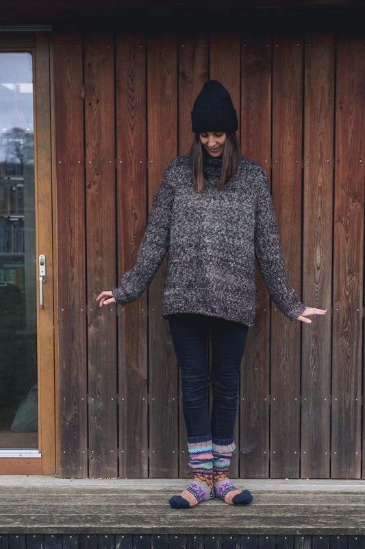 Dark Blue, Purple & Ochre Fair Isle Hand Knitted Socks
