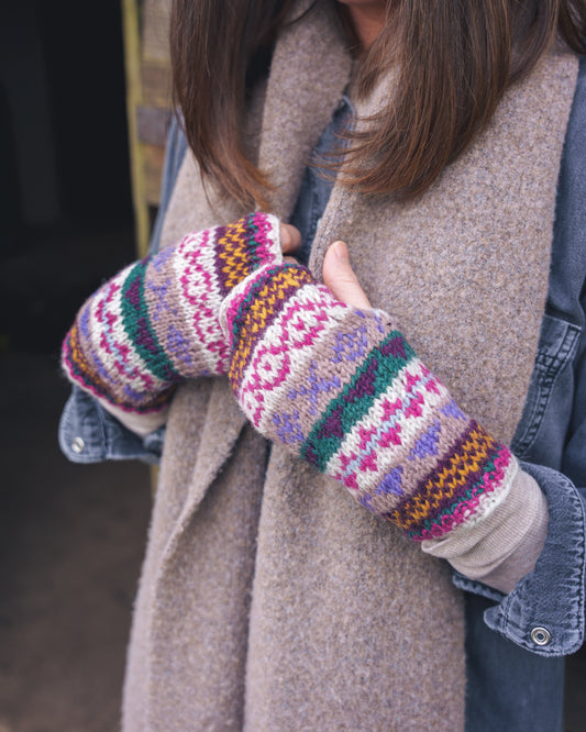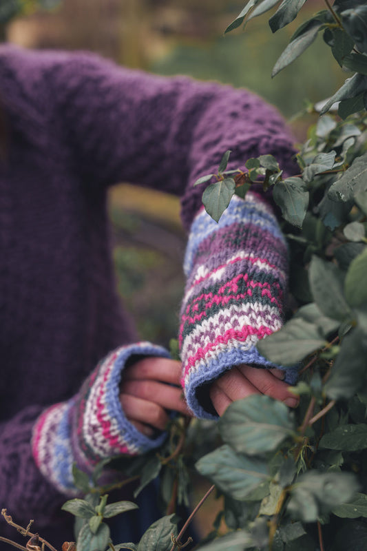 Lilac & Raspberry Hand Knitted Wrist Warmers