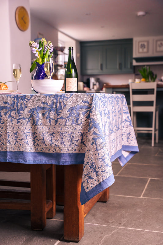 Udaipur Blue Birds Hand Block Printed Table Cloth