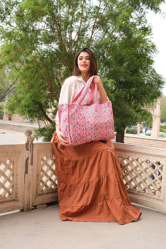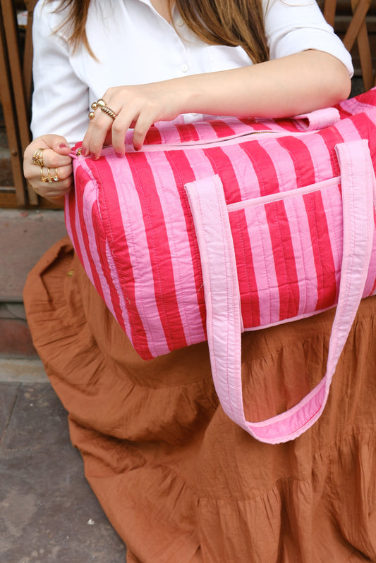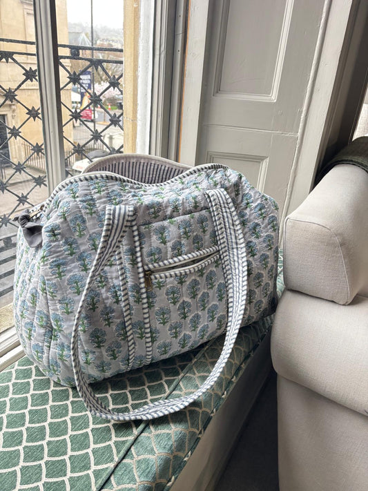 NEW Cornflower Gingham Screen and Block Print Duffle Bag