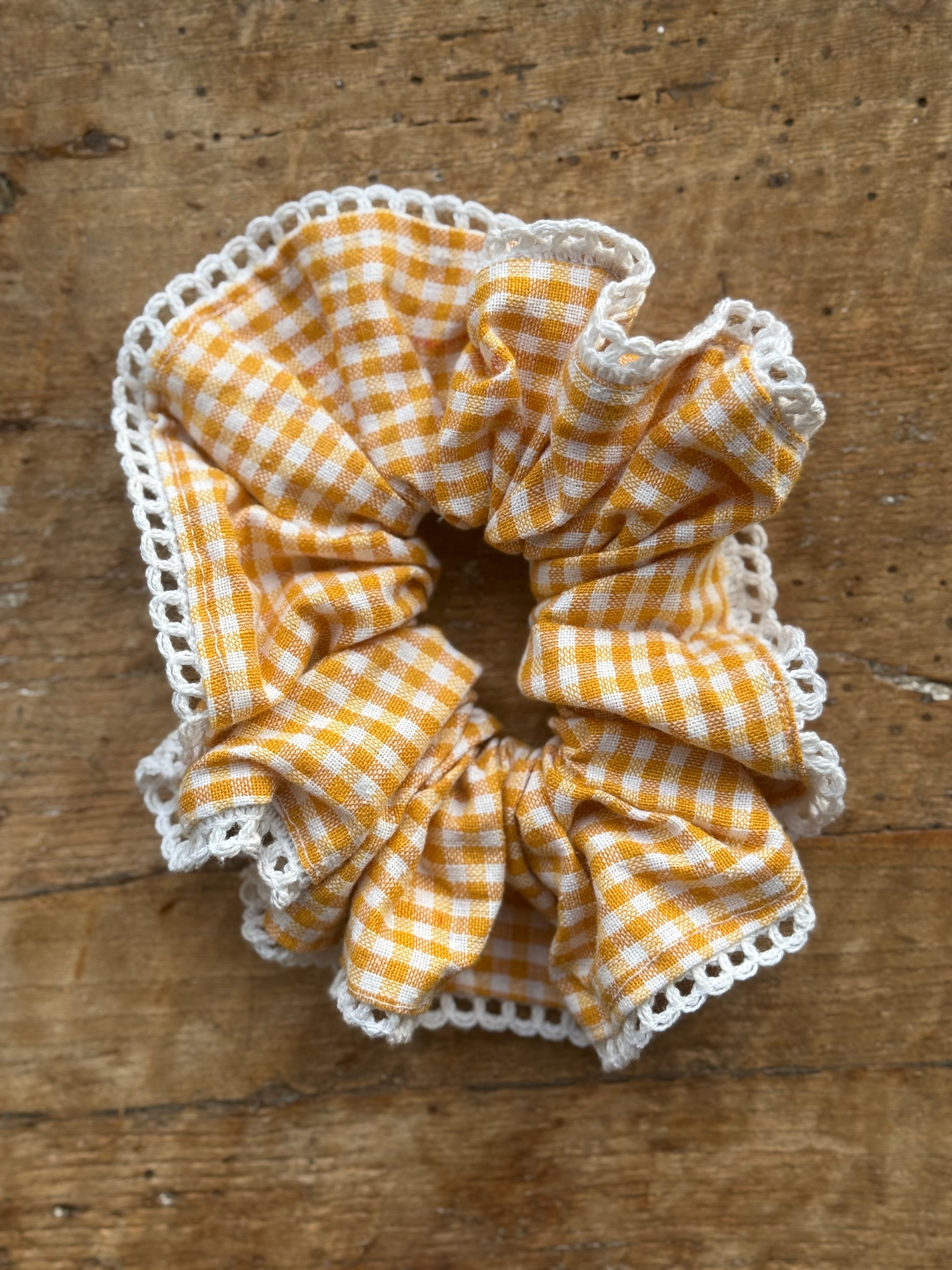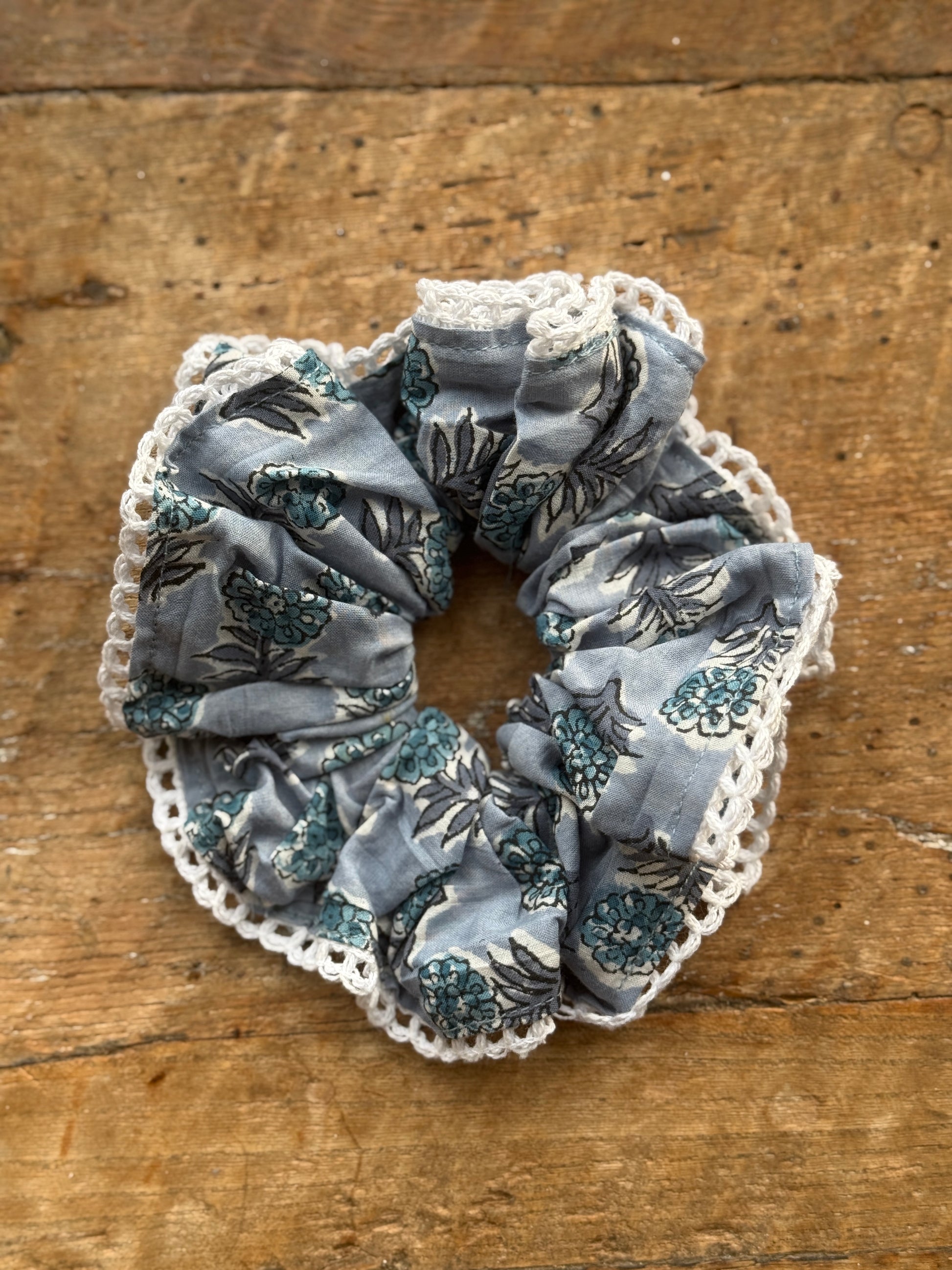 Beautiful large hair scrunchies made from block printed fabric remnants in Jaipur. Each scrunchie measures approximately 5 inches in diameter.